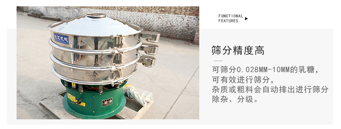 2、體積小,不占用多余空間,移動方便。篩網(wǎng)網(wǎng)架為子母網(wǎng)結(jié)構(gòu),篩分乳糖可單層、多層使用,一次多規(guī)格篩選。