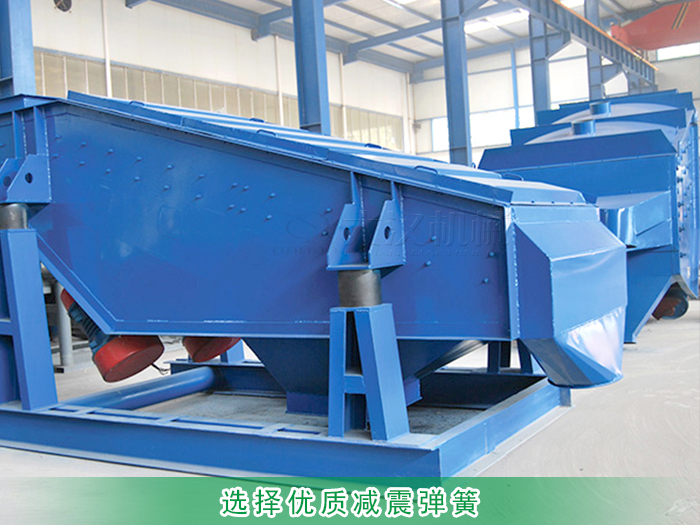 砂巖礦用振動篩因體型較大所以對減震彈簧的質(zhì)量要求非常嚴格,劣質(zhì)彈簧會在使用一段時間后,發(fā)生彈簧崩裂、彈性不足等問題來影響篩分效率,甚至會造成在篩分過程中箱體振裂。所以需要選用優(yōu)質(zhì)減震彈簧,它減震效果和承載力都很好,可有效延長設備使用的壽命。