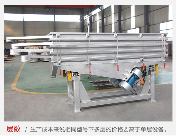 單層振動(dòng)篩與二層振動(dòng)篩的區(qū)別還是很大的。價(jià)格不同,就設(shè)計(jì)和生產(chǎn)成本來(lái)說(shuō)相同型號(hào)的振動(dòng)篩多層的價(jià)格要高于單層設(shè)備。多層振動(dòng)篩可以篩分多種物料,而單層振動(dòng)篩只能篩分一種物料。所以這也是選擇雙層振動(dòng)篩比較好的原因。