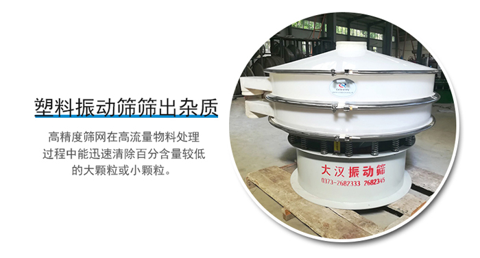 塑料振動篩也叫聚丙烯振動篩,塑料振動篩主要是為了解決篩分物料與金屬接觸而產(chǎn)生化學反應(yīng)的問題。聚丙烯振動篩:從篩框、篩網(wǎng)和清網(wǎng)裝置完全采用非金屬材料,完全排除了一些特殊物料與金屬接觸會產(chǎn)生化學反應(yīng)的問題。