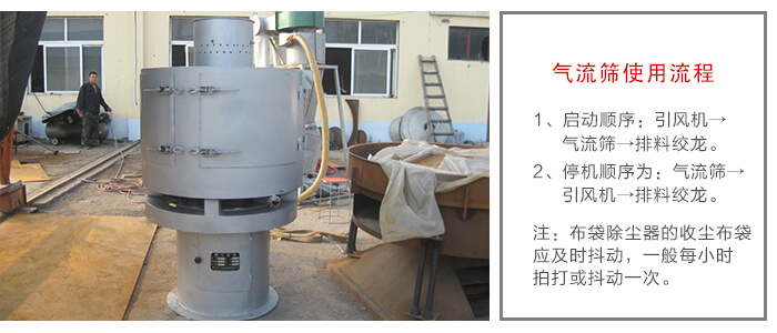 氣流篩篩分效率高、篩網立裝不荷重。適應細度范圍廣,全封閉結構,噪音小能耗低、可連續(xù)作業(yè)。