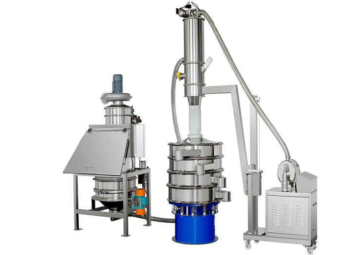 無塵投料站適用于制藥、化工、食品、電池材料等行業(yè)大、中、小袋物料的拆包、投放、篩分和卸料。拆包時(shí)由于集塵風(fēng)機(jī)的作用,可以避免物料粉塵到處飛揚(yáng)。當(dāng)物料解袋并倒入下一道工序時(shí),只需人工直接拆包投入到該系統(tǒng),物料通過振動篩,可將大塊物料和異物攔截,從而保證符合要求的顆粒排出。