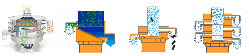 | 應用 | 要用于物料原料的篩分和成品的最終生產(chǎn)檢驗,可以去除產(chǎn)品中的結(jié)塊和污染物,一次操作最多可提供5級分級。 | 適合高粘性、高靜電細粉,篩分精度可以提高80%以上,產(chǎn)量提高2-5倍。 | 模擬人工篩分的動作,產(chǎn)生了水平和投擲的三維滾動運動,適用于500目以內(nèi)的細粒狀物料,篩分精度提高了90-95%,產(chǎn)量是圓形振動篩的5-10倍。 | 適合一般的粗略篩分或除雜,的進、出料口設(shè)計在同一垂直方向上,這樣會加快物料的排料速度,處理量是普通圓形振動篩的2-5倍。 | 經(jīng)常用在液體過濾行業(yè),可去除液體或懸浮物中存在的不需要的顆粒,當然也是可以作為粉末除雜??捎迷谔幚砹枯^小的工廠或小型作坊。 |