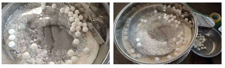適用物料:塊狀或不規(guī)則物料的表面裹粉,如:湯圓,餃子,花生,雞塊,魚(yú)塊等